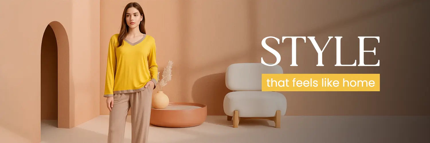Yellow Flower Printed Pocket Half Sleeves Shirt and White Flower Printed Trouser Night Wear